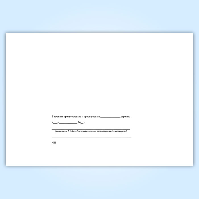 Вы получаете печатную продукцию прошнурованной и c местом для вашей печати в соответствии с действующими нормативными документами: