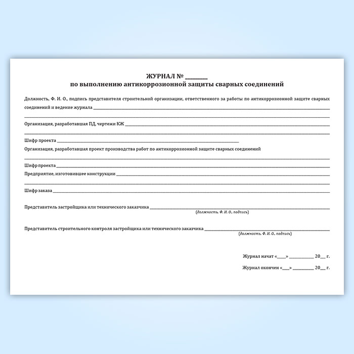 Журнал по выполнению антикоррозионной защиты сварных соединений (форма 12.3) в Альметьевске купить