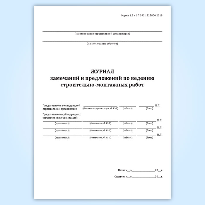 Журнал замечаний и предложений по ведению строительно-монтажных работ (форма 1.5, СП 392.1325800.2018) в Альметьевске купить