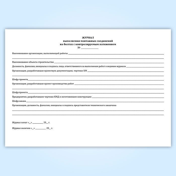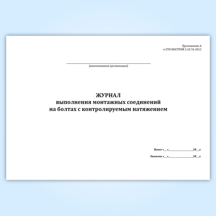 Журнал выполнения монтажных соединений на болтах с контролируемым натяжением (СТО НОСТРОЙ 2.10.76-2012) в Альметьевске купить
