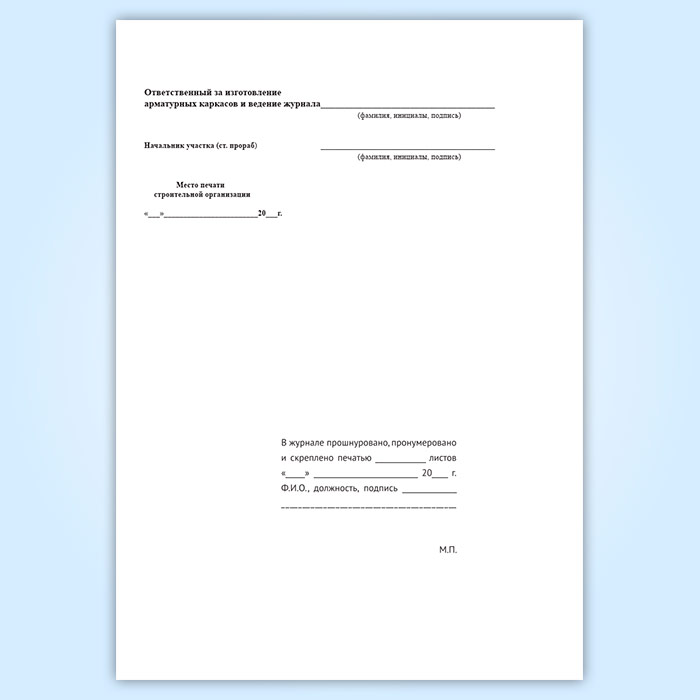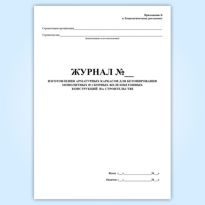 Журнал изготовления арматурных каркасов для бетонирования монолитных и сборных железобетонных конструкций на строительстве в Альметьевске купить