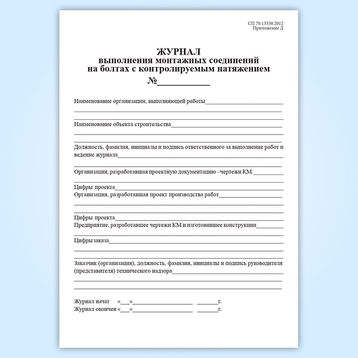 Журнал выполнения монтажных соединений на болтах с контролируемым натяжением в Альметьевске купить