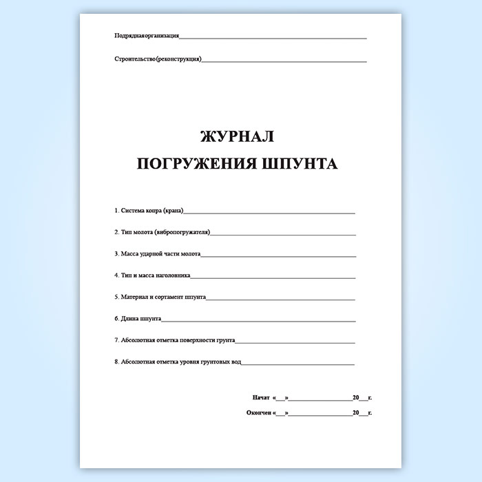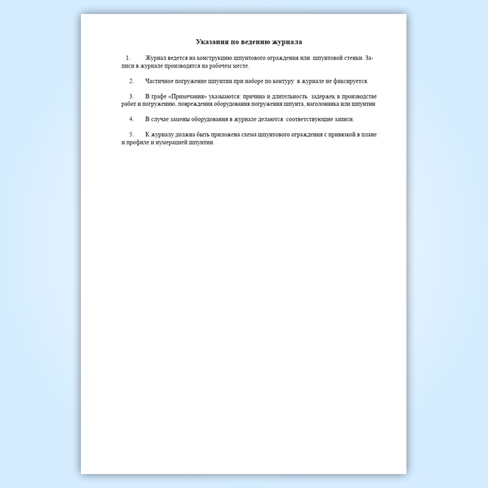 Журнал погружения шпунта в Альметьевске купить
