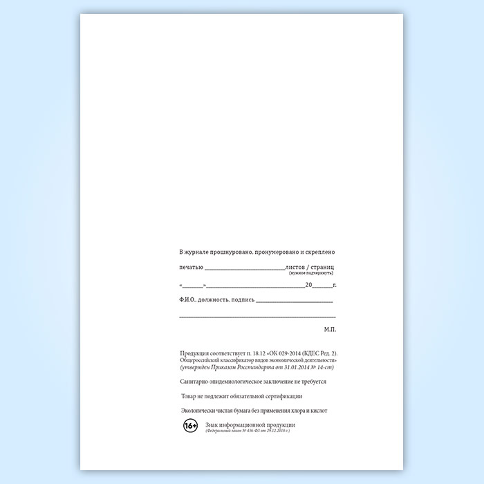 Вы получаете печатную продукцию прошнурованной и c местом для вашей печати в соответствии с действующими нормативными документами: