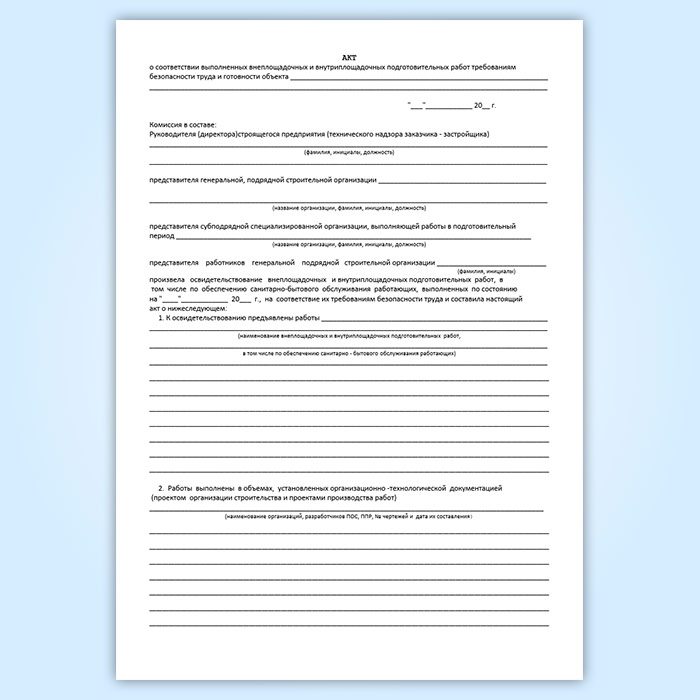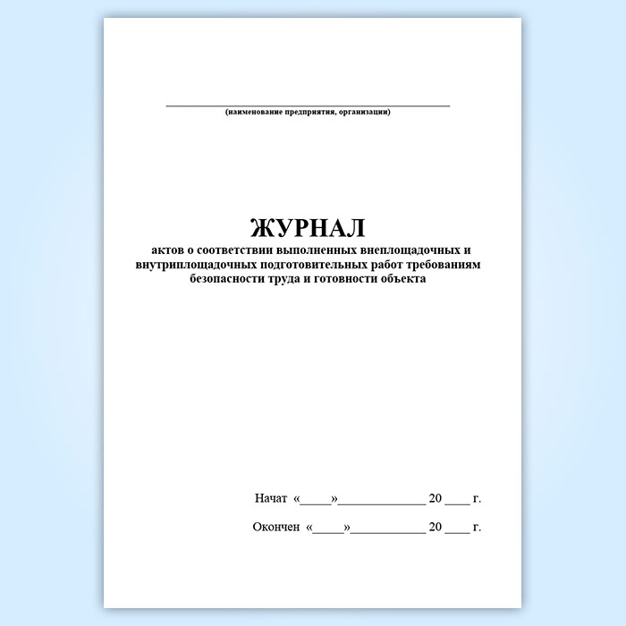 Журнал актов о соответствии выполненных внеплощадочных и внутриплощадочных подготовительных работ требованиям безопасности труда и готовности объекта в Альметьевске купить