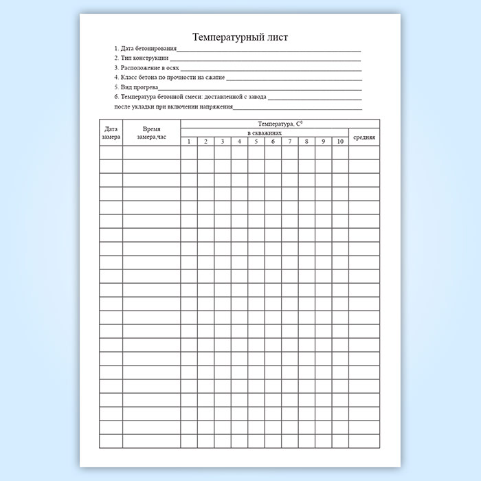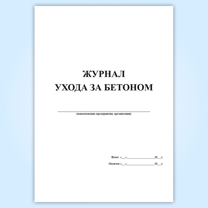 Журнал ухода за бетоном (с графиком продолжительности твердения) в Альметьевске купить
