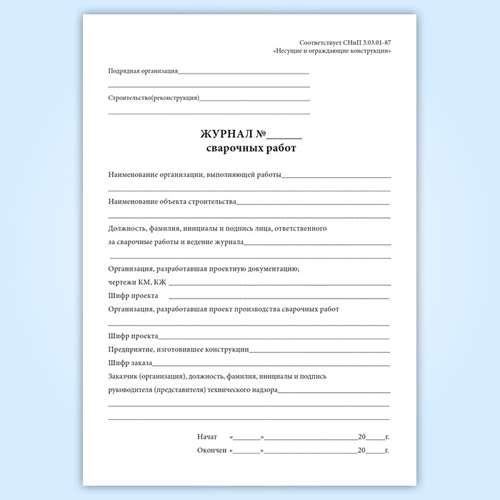 Журнал сварочных работ (СНиП 30301-87) в Альметьевске купить