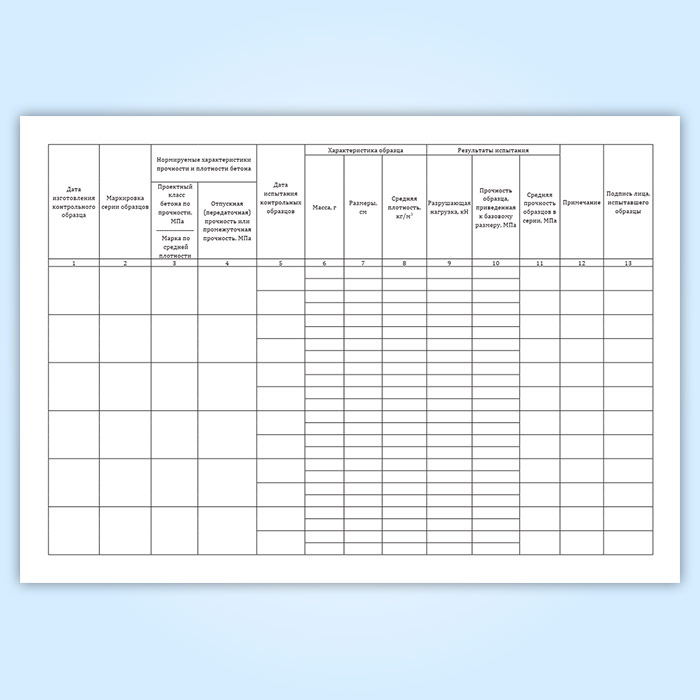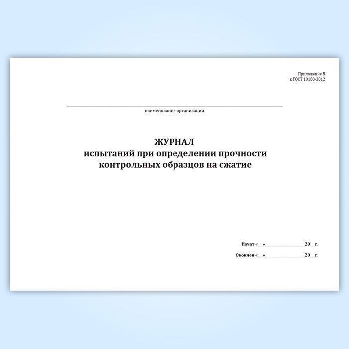 Журнал испытаний при определении прочности контрольных образцов на сжатие в Альметьевске купить