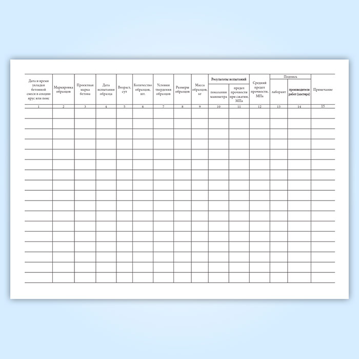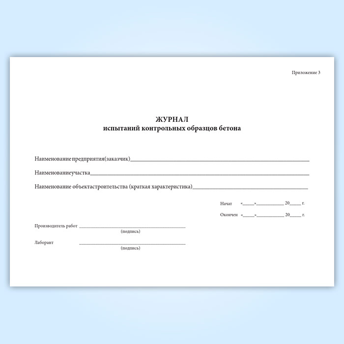 Журнал испытаний контрольных образцов бетона (ВСН 430-82) в Альметьевске купить