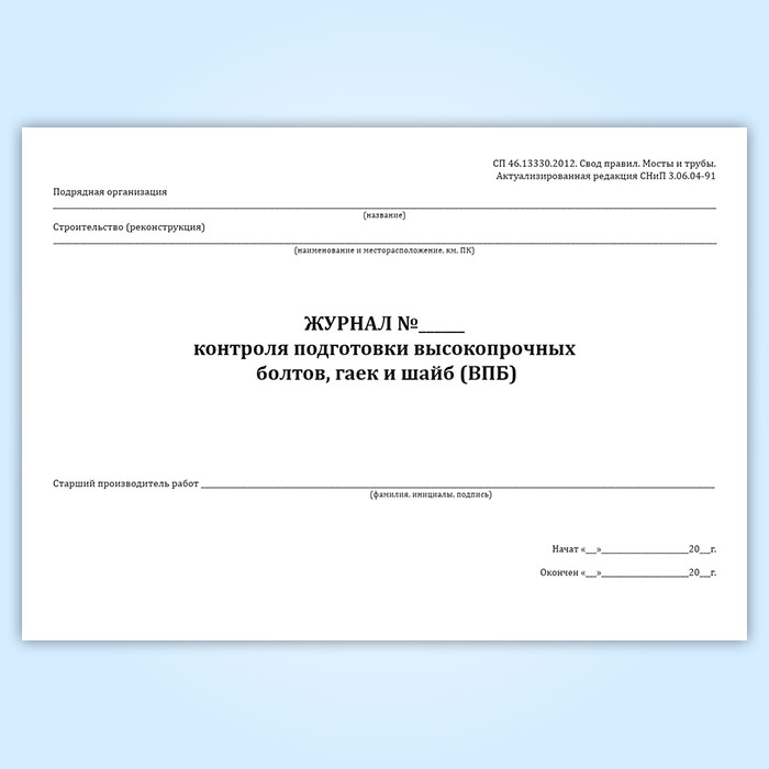 Журнал контроля подготовки высокопрочных болтов, гаек и шайб в Альметьевске купить