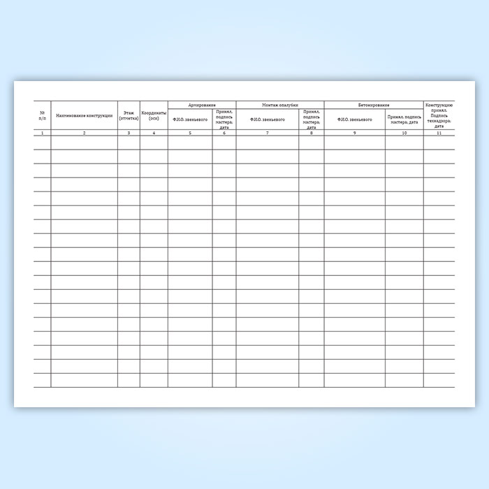 Журнал операционного контроля приемки монолитных железобетонных конструкций в Альметьевске купить