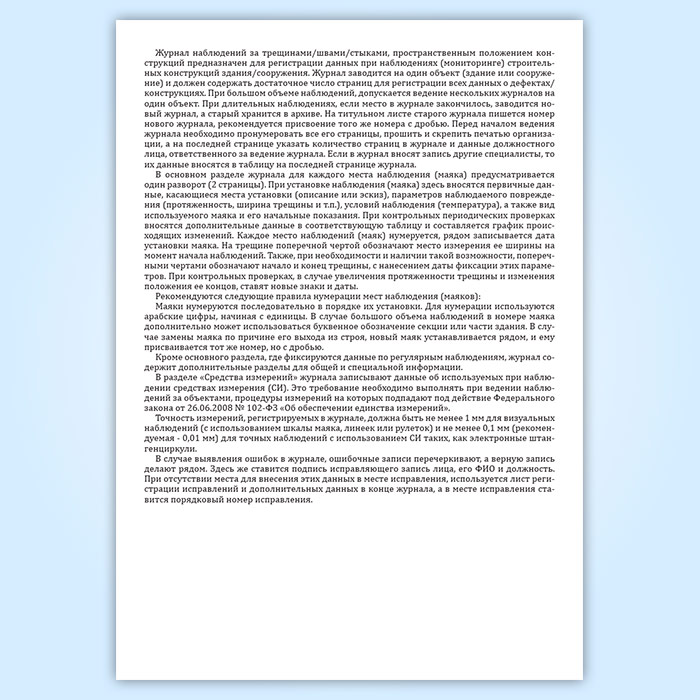 Журнал наблюдений за трещинами/швами/стыками, пространственным положением конструкций (для одного объекта) в Альметьевске купить