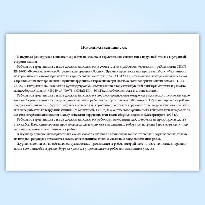 Журнал контроля качества производства работ по заделке и герметизации стыков полносборных зданий в Альметьевске купить