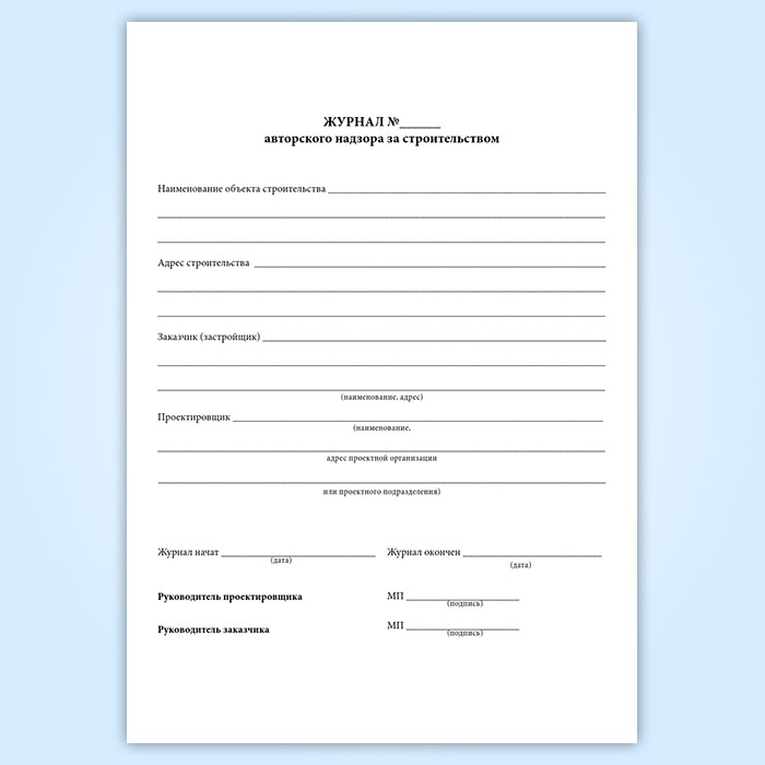Журнал авторского надзора за строительством (СП 246.1325800.2016) в Альметьевске купить