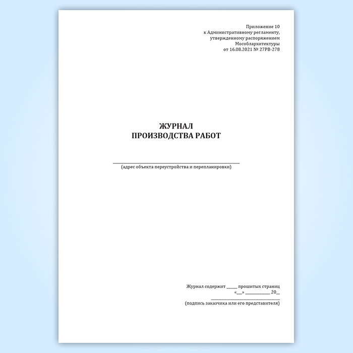 Журнал производства работ (Распоряжение Мособлархитектуры МО от 16.08.2021 N 27РВ-278) в Альметьевске купить