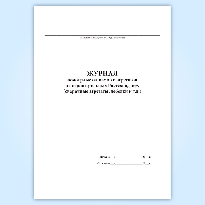 Журнал осмотра механизмов и агрегатов неподконтрольных Ростехнадзору в Альметьевске купить