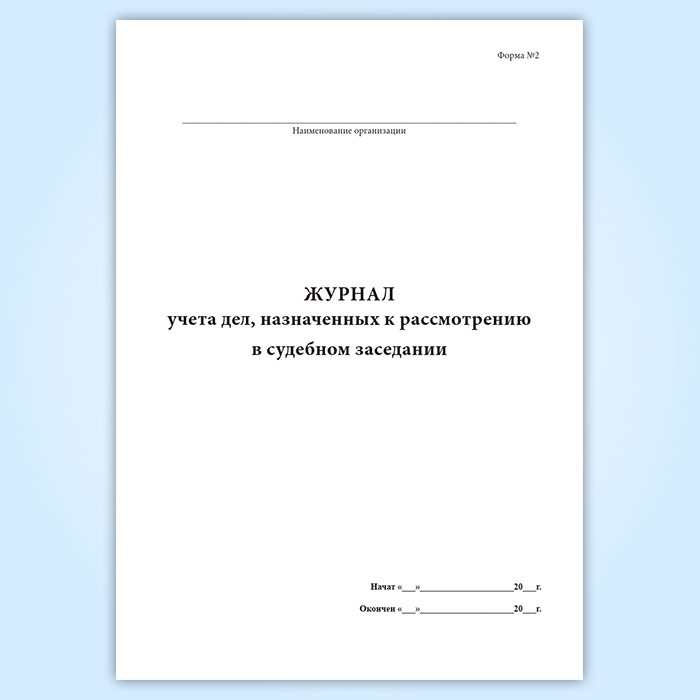 Журнал учета дел, назначенных к рассмотрению в судебном заседании (форма № 2) в Альметьевске купить