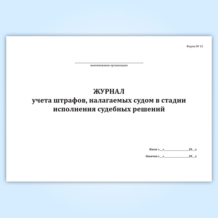 Журнал учета штрафов, налагаемых судом в стадии исполнения судебных решений (форма № 15) в Альметьевске купить