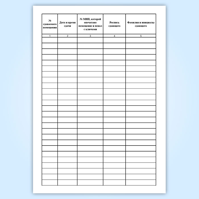 Журнал приема-выдачи ключей и приема помещений под охрану, размещенных на территории в Альметьевске купить