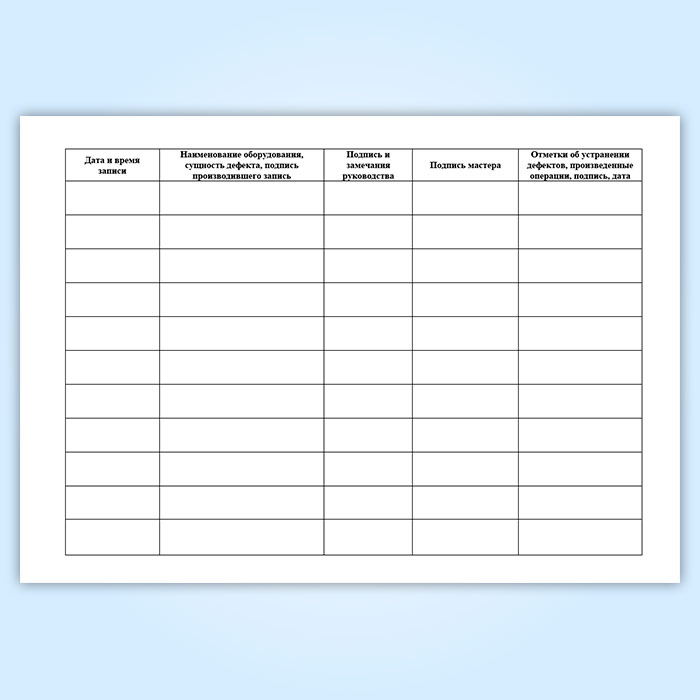 Журнал дефектов и неполадок оборудования котельной в Альметьевске купить