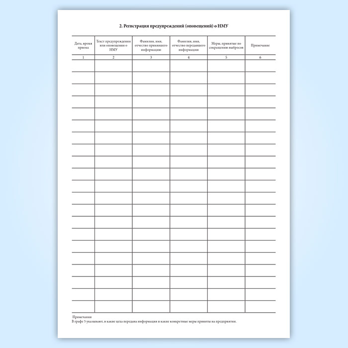 Журнал регулирования выбросов при неблагоприятных метеорологических условиях (НМУ) в Альметьевске купить