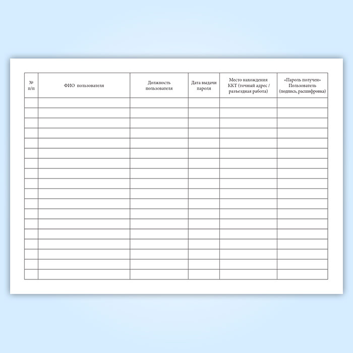 Журнал выдачи паролей для работы с контрольно-кассовой техникой (ККТ) в Альметьевске купить