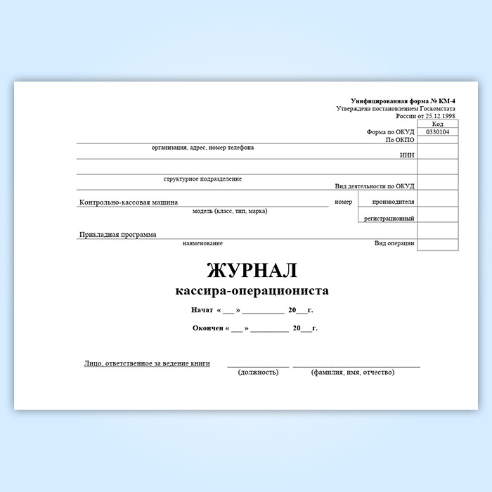 Журнал кассира-операциониста, горизонтальный (форма № КМ-4) в Альметьевске купить