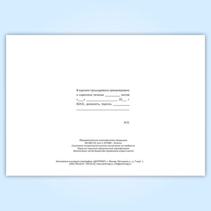 Вы получаете печатную продукцию прошнурованной и c местом для вашей печати в соответствии с действующими нормативными документами:
