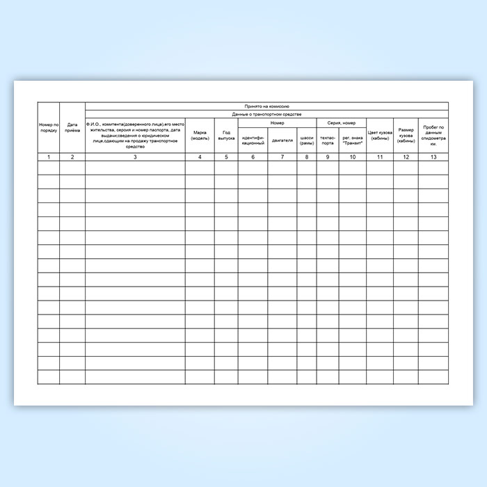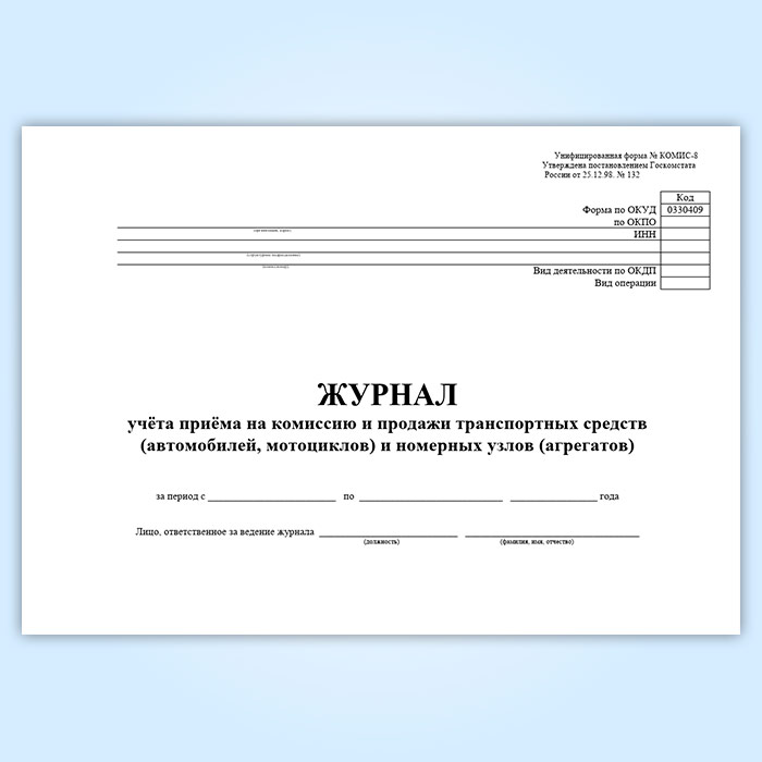 Журнал учета приема на комиссию и продажи транспортных средств (автомобилей, мотоциклов) и номерных узлов (агрегатов) (форма № КОМИС-8) в Альметьевске купить