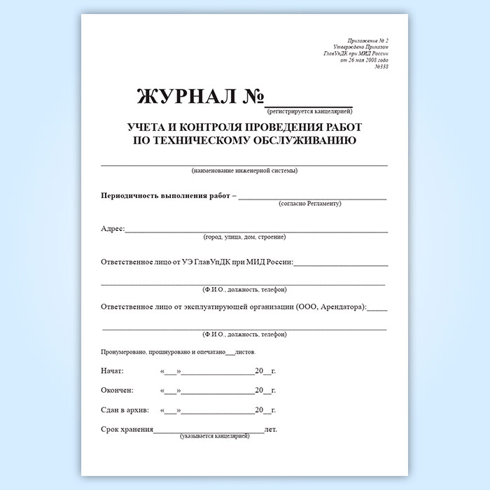 Журнал учета и контроля проведения работ по техническому обслуживанию в Альметьевске купить