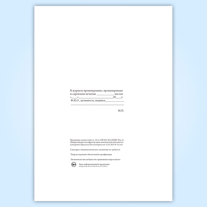 Вы получаете печатную продукцию прошнурованной и c местом для вашей печати в соответствии с действующими нормативными документами: