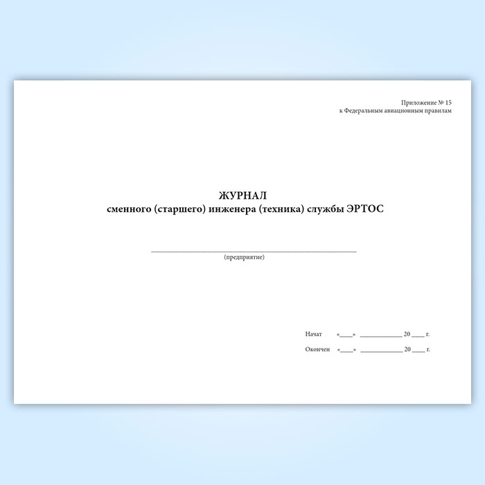 Журнал сменного (старшего) инженера службы ЭРТОС в Альметьевске купить