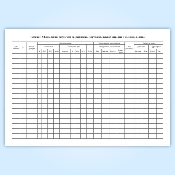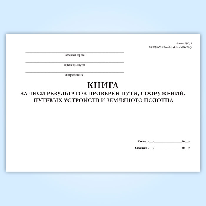 Книга записи результатов проверки пути, сооружений, путевых устройств и земляного полотна (форма ПУ-28) в Альметьевске купить