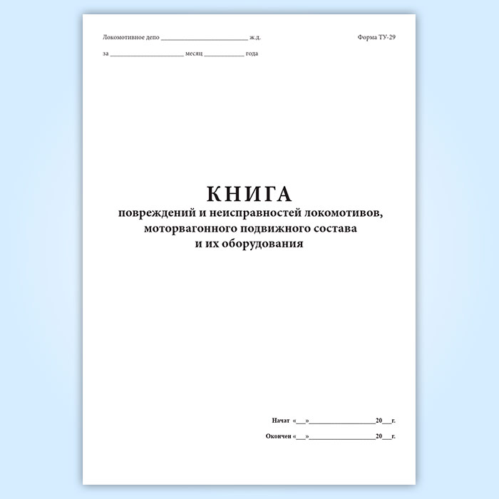 Книга повреждений и неисправностей локомотивов, моторвагонного подвижного состава и их оборудования (форма ТУ-29) в Альметьевске купить