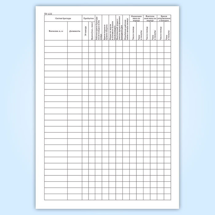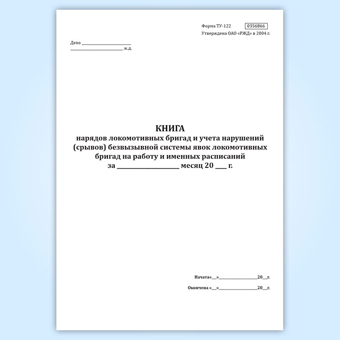 Книга нарядов локомотивных бригад и учета нарушений (срывов) безвызывной системы явок локомотивных бригад на работу и именных расписаний (форма ТУ-122) в Альметьевске купить