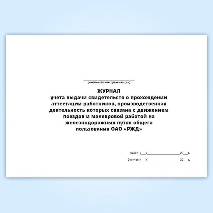 Журнал учета выдачи свидетельств о прохождении аттестации работников, производственная деятельность которых связана с движением поездов и маневровой работой на железнодорожных путях общего пользования ОАО «РЖД» в Альметьевске купить