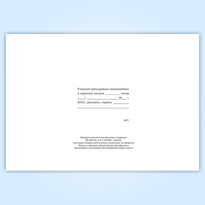 Вы получаете печатную продукцию прошнурованной и c местом для вашей печати в соответствии с действующими нормативными документами: