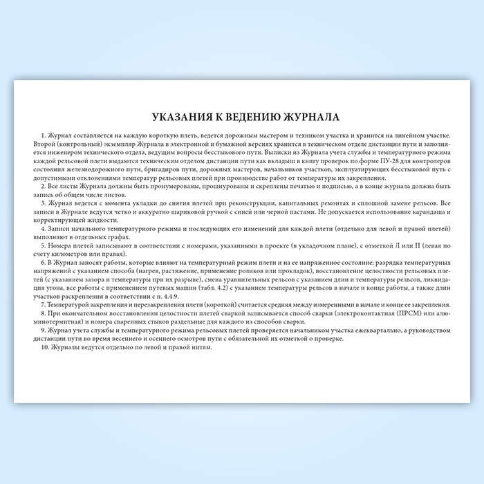 Журнал учета службы и температурного режима рельсовых плетей в Альметьевске купить