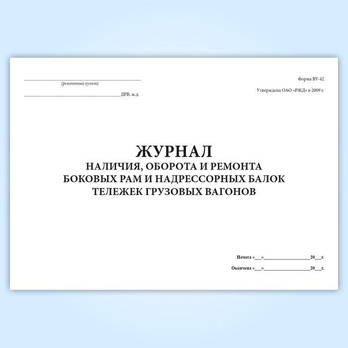 Журнал учета наличия, оборот и ремонт боковых рам и надрессорных балок тележек грузовых вагонов (форма ВУ-42) в Альметьевске купить