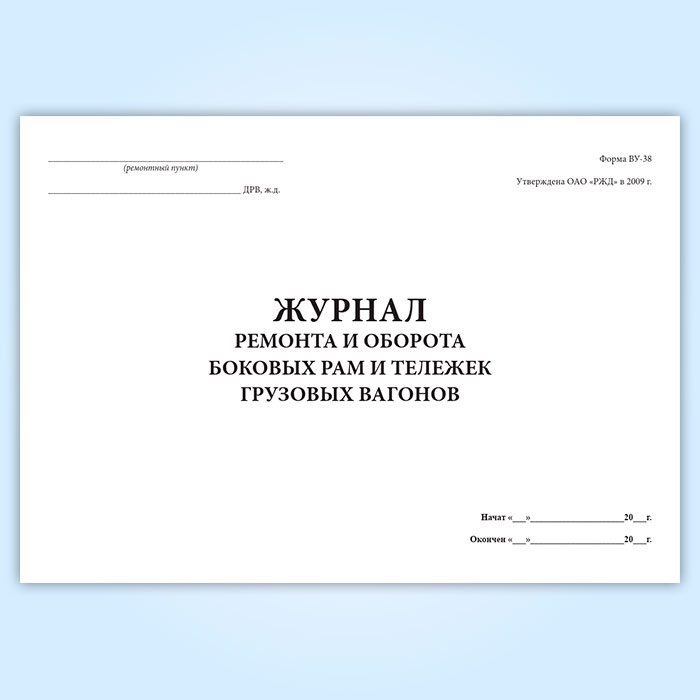 Журнал ремонта и оборота боковых рам и тележек грузовых вагонов (форма ВУ-38) в Альметьевске купить