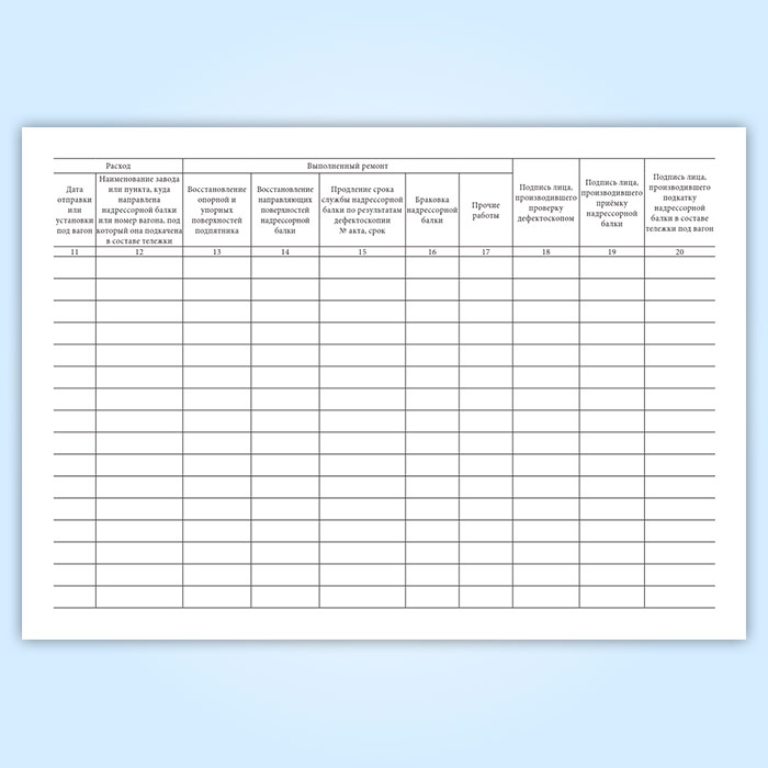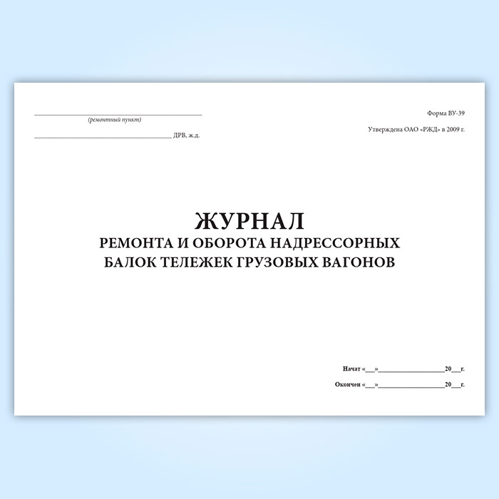 Журнал ремонта и оборота надрессорных балок тележек грузовых вагонов (форма ВУ-39) в Альметьевске купить