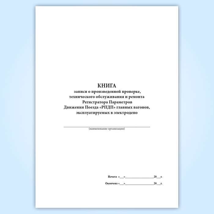 Книга записи о произведенной проверке, технического обслуживания и ремонта Регистратора Параметров Движения Поезда «РПДП» главных вагонов, эксплуатируемых в электродепо в Альметьевске купить