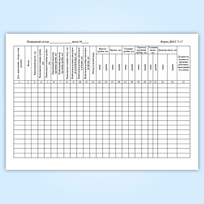 Книга состояния колесных пар скоростных/высокоскоростных электропоездов (форма ДОСС У-17) в Альметьевске купить