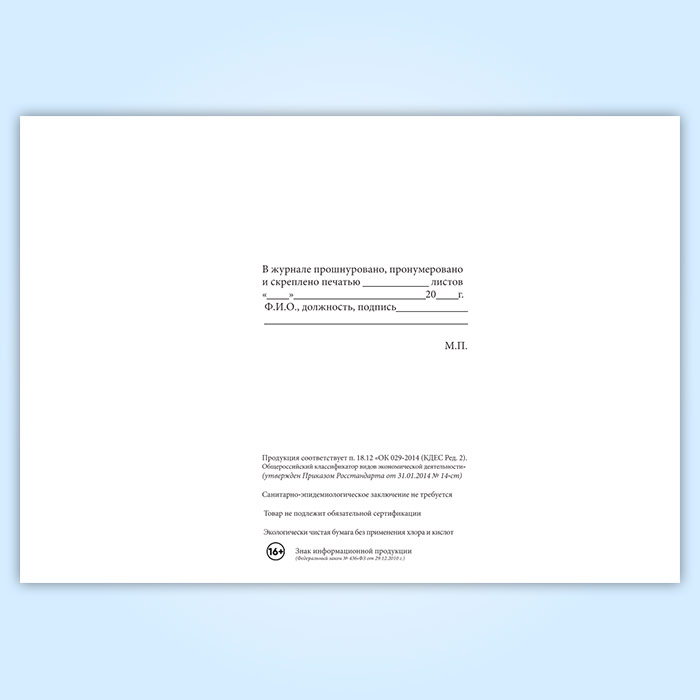 Вы получаете печатную продукцию прошнурованной и c местом для вашей печати в соответствии с действующими нормативными документами: