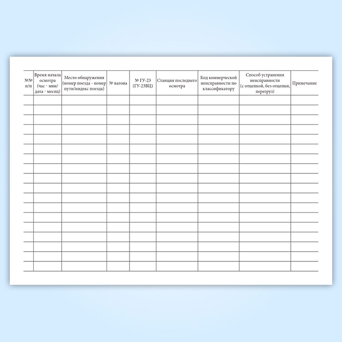 Книга регистрации коммерческих неисправностей вагонов в поездах в пунктах коммерческого осмотра (форма ГУ-98ВЦ) в Альметьевске купить