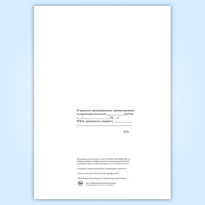 Вы получаете печатную продукцию прошнурованной и c местом для вашей печати в соответствии с действующими нормативными документами: