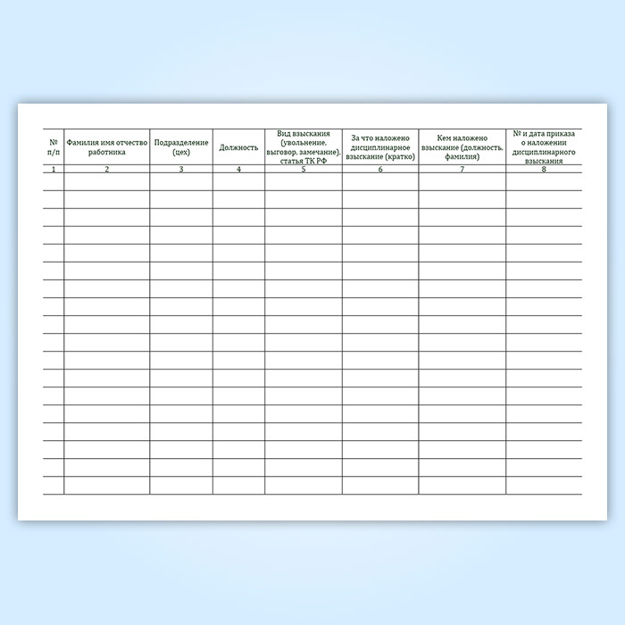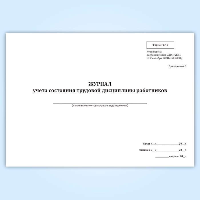 Журнал учета состояния трудовой дисциплины работников (форма ТТУ-8) в Альметьевске купить