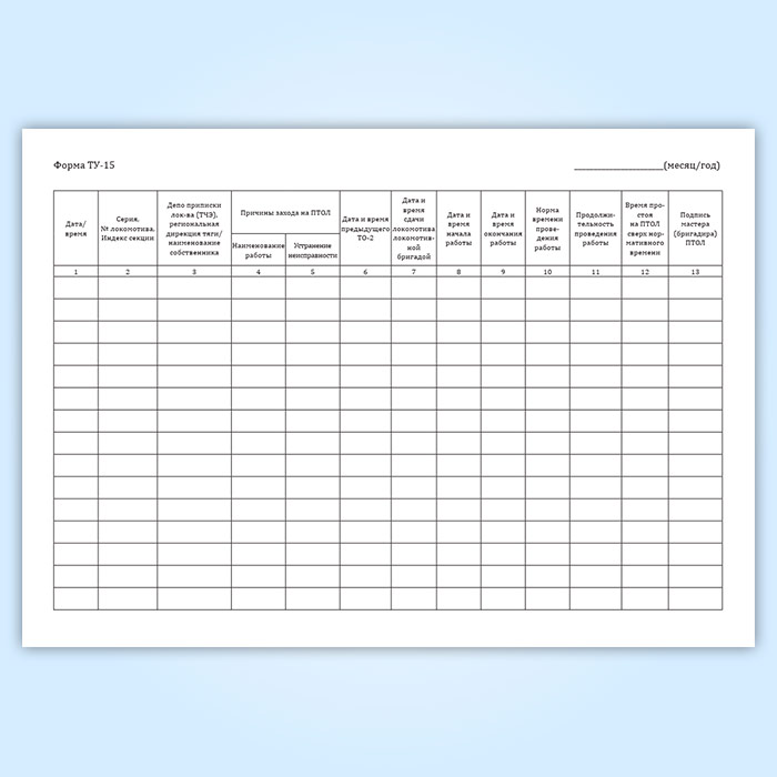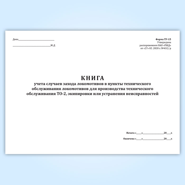 Книга учета случаев захода локомотивов в пункты технического обслуживания локомотивов для производства технического обслуживания ТО-2, экипировки или устранения неисправностей (форма ТУ-15) в Альметьевске купить
