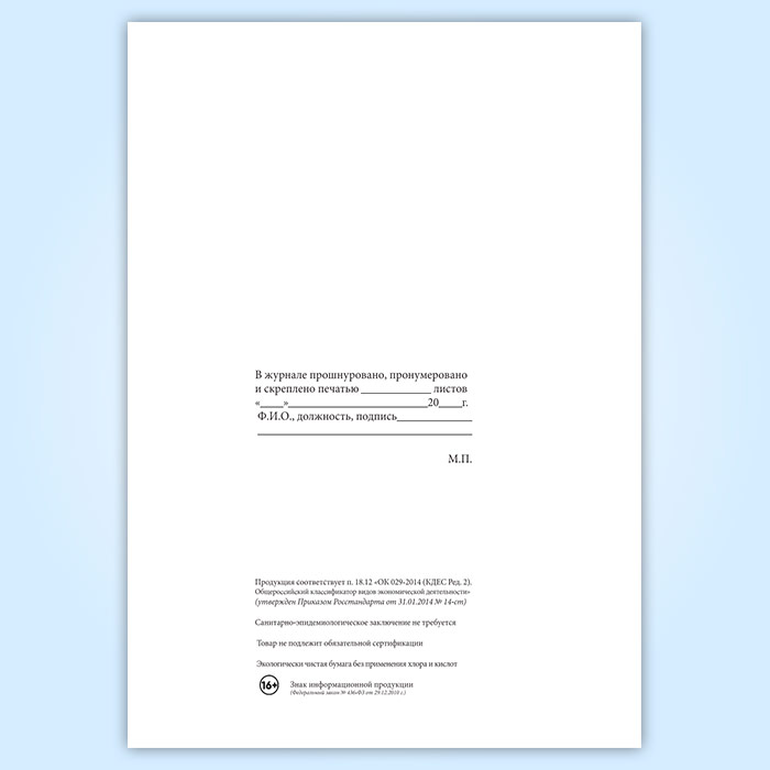 Вы получаете печатную продукцию прошнурованной и c местом для вашей печати в соответствии с действующими нормативными документами: