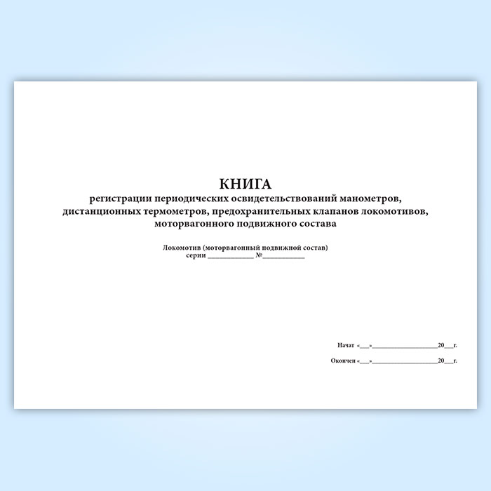 Книга регистрации периодических освидетельствований манометров, дистанционных термометров, предохранительных клапанов локомотивов, моторвагонного подвижного состава (форма ТКУ-8) в Альметьевске купить